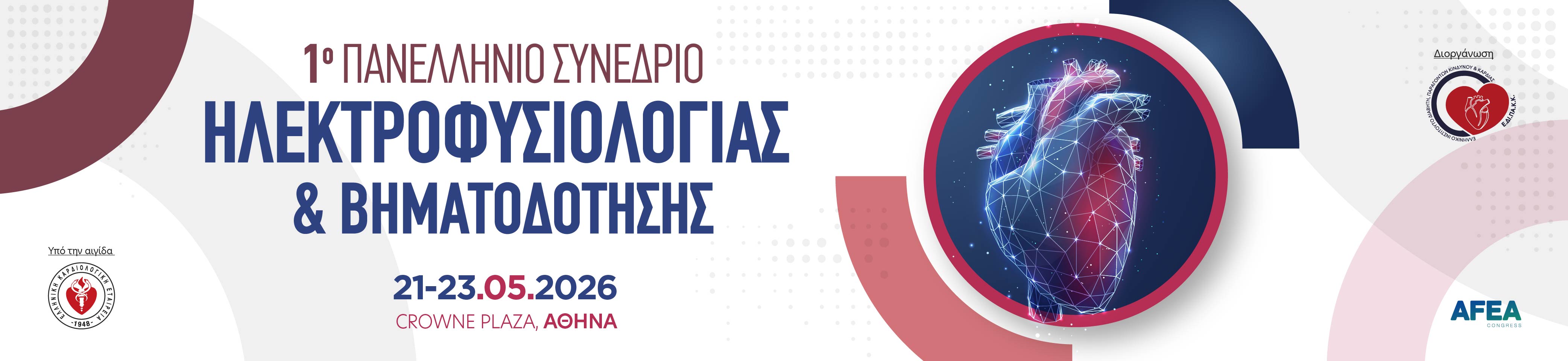 Με ιδιαίτερη τιμή και χαρά σας καλωσορίζουμε στο 1ο Πανελλήνιο Συνέδριο Ηλεκτροφυσιολογίας και Βηματοδότησης, μια σημαντική επιστημονική συνάντηση που φιλοδοξεί να αποτελέσει σημείο αναφοράς για την ελληνική καρδιολογική κοινότητα και ειδικότερα για τους επαγγελματίες υγείας που δραστηριοποιούνται στον τομέα της διάγνωσης και της θεραπευτικής αντιμετώπισης των καρδιακών αρρυθμιών.